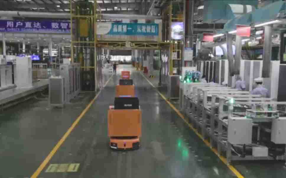 为车载冰箱物流配送打造的智能解决方案,,包含产中物流通过潜伏举升AMR搬运至线边,,,产后成品物流智能仓储,,,流程包含产中物流智能齐套入库,,线边安灯叫料AMR智能配送至线边,,,,成品入库、、、、出库,,,通过无人堆高车机器人,,,,智能仓储管理替代人工作业管理,,实现更高存储、、、更高效率、、更具柔性化的解决方案。。