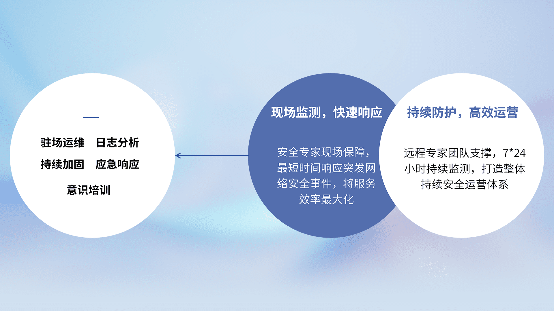 7X24小时持续监测安全事件,保持安全策略有效性,降低资产脆弱性风险,,精准拦截黑客攻击,,,减少被黑客利用的机会,,第一时间遏制,,降低损失。。